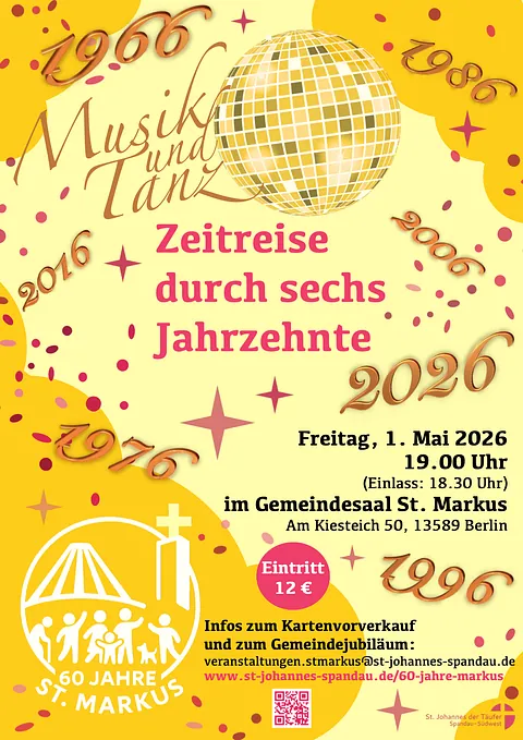 im Gemeindesaal von St. Markus (Am Kiesteich 50) starten wir eine Zeitreise durch die letzten sechs Jahrzehnte - mit Musik und Tanz.