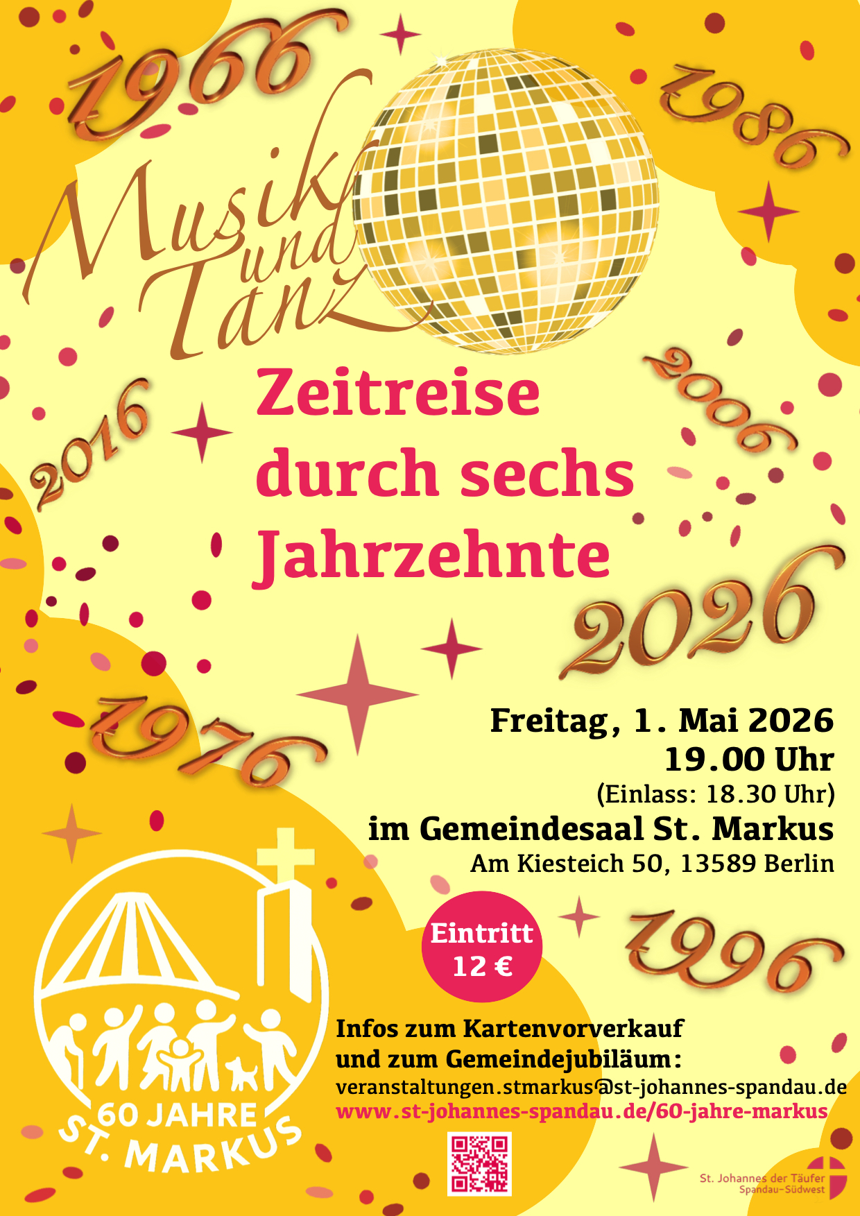 im Gemeindesaal von St. Markus (Am Kiesteich 50) starten wir eine Zeitreise durch die letzten sechs Jahrzehnte - mit Musik und Tanz.
