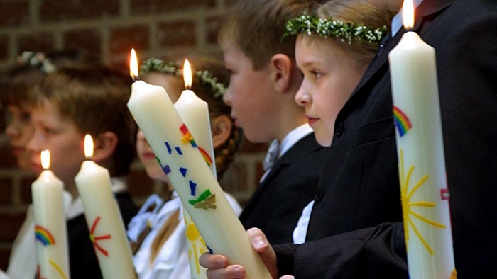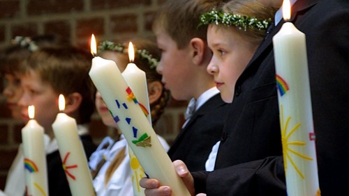 Kinder, die die 4. Klasse besuchen oder mindestens 9 Jahre alt sind, können sich in unseren Gemeinden auf den Empfang der ersten heiligen Kommunion vorbereiten. Für die Kommunionkurse an den einzelnen Standorten sowie die Erstkommunionfeiern in St. Markus, St. Maximilian Kolbe und Mariä Himmelfahrt ist Gemeindereferent Johannes Motter gemeinsam mit den ehrenamtlichen Begleiter-Teams verantwortlich. Vor, während und nach den Kursen - die aus den Unterichts- und Gruppenstunden sowie gemeinsamen Gottesdiensten und Aktionen im Kirchenjahr bestehen, steht Herr Motter für alle Fragen zum Thema gerne zur Verfügung. In der Regel schreiben wir alle Familien mit Kindern im entsprechenden Alter jeweils vor den Sommerferien an und laden sie zur Anmeldung für den neuen Kurs (Beginn meist nach den großen Ferien, Erstkommunionfeiern dann im Frühling) ein - das Anmeldeformular für den Erstkommunionkurs finden Sie während der Anmeldephase auch hier:[Formular geschlossen]