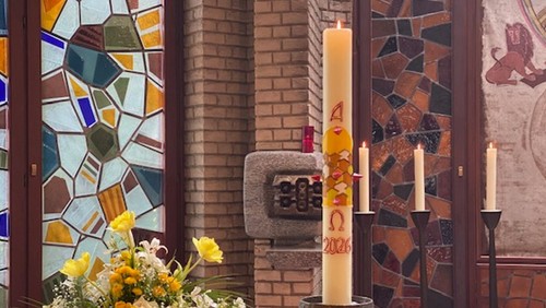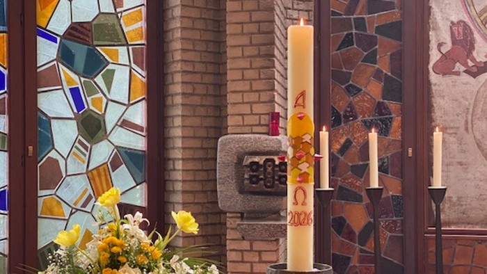 Auch dieses Jahr hat Isolde Palmieri wieder die Osterkerze für Mariä Himmelfahrt gestaltet.