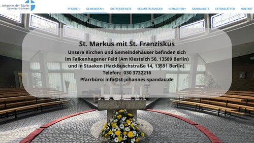 Der Seiten der Gemeinde St. Markus wurden überarbeitet. Übersichtlich und ansprechend finden Sie jetzt unter Gemeinde / St. Markus mit St. Franziskus die Termine der Gemeinde, unsere Gruppen und Aktivitäten sowie die wichtigsten Kontakte. Zukünftig wird es hier auch Neuigkeiten - wie diese - und geistliche Impulse geben.