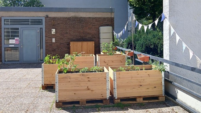 Im letzten Jahr hat sich eine Gruppe zusammengefunden, die einen Nachbarschaftsgarten aufgebaut hat und pflegt. Eine Kita nutzt auch ein Beet.
