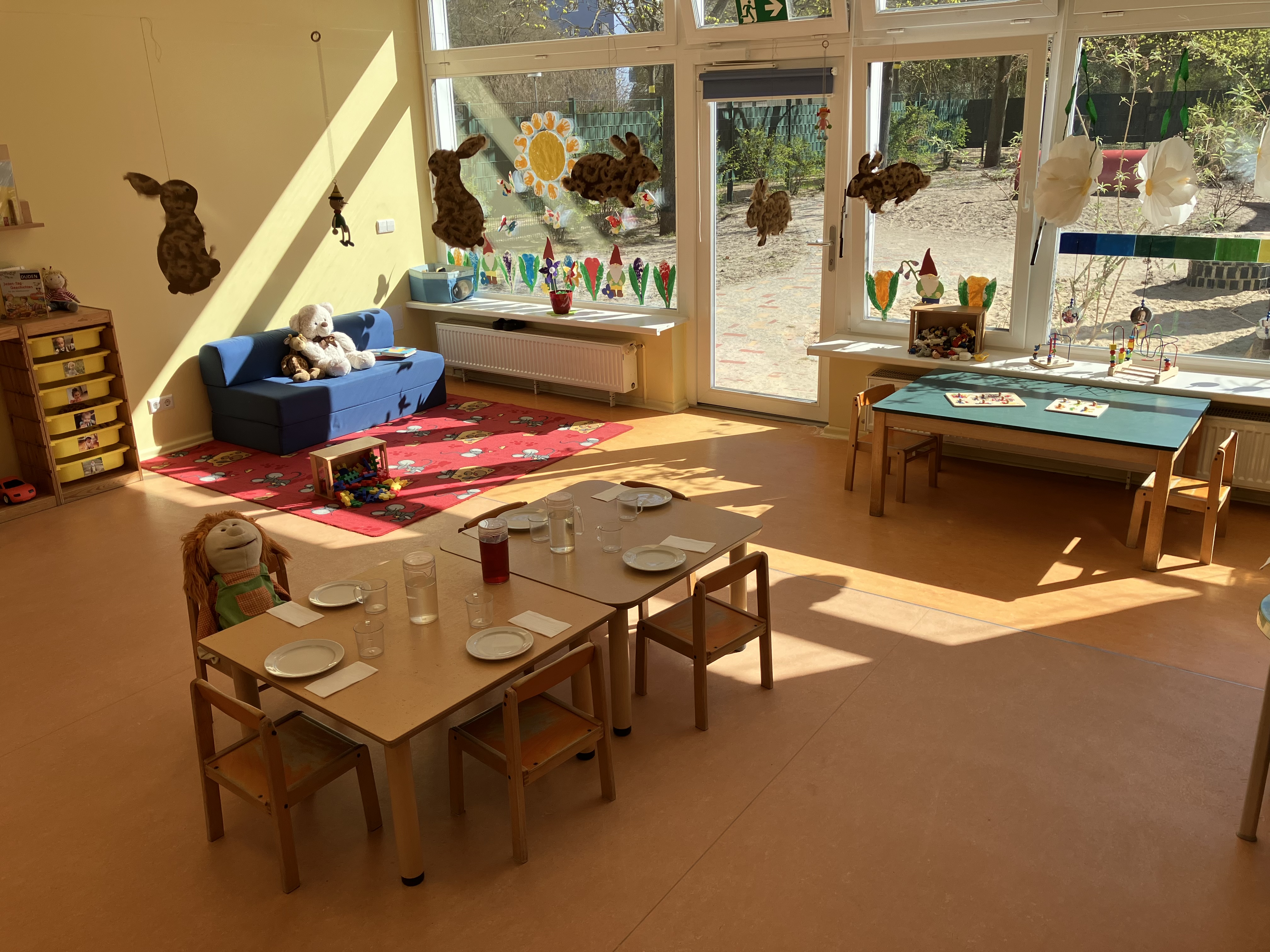 Wir sind eine kleine und familiäre / übersichtliche Kita mit vier konstanten Gruppen. Unsere Gruppen bestehen in der Regel aus zwölf bis fünfzehn Kindern, in der Krippe sind es acht bis zehn Kinder.