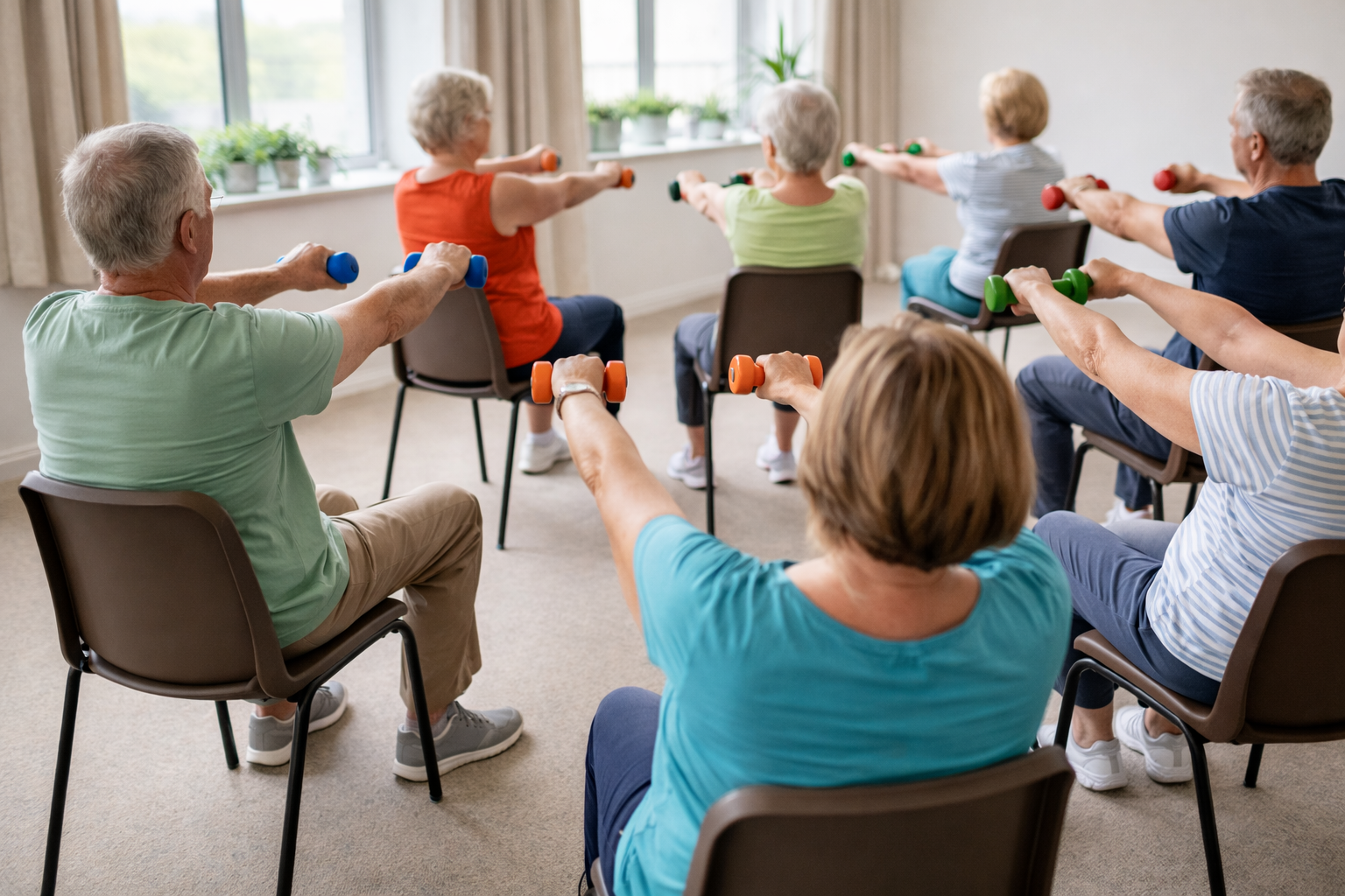 Sanfte Bewegung mit großer Wirkung: Unsere Sitzgymnastik richtet sich an alle, die ihre Beweglichkeit, Kraft und ihr Gleichgewicht schonend verbessern möchten. Mit einfachen Übungen im Sitzen fördern wir die Mobilität, stärken die Muskulatur und unterstützen das allgemeine Wohlbefinden – ganz ohne Überforderung.